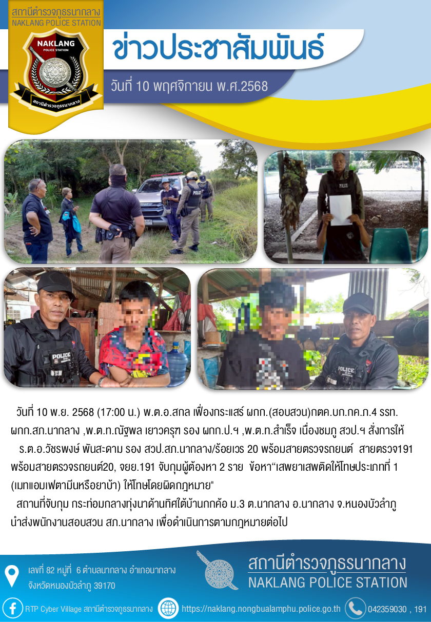 วันที่ ( ๑๙ พ.ค.๒๕๖๘ ) เวลา ๐๗.๐๐ น.ถึง ๐๘.๓๐ น. พ.ต.อ.ชัยพล คำนอก ผกก.สภ.นากลาง, พ.ต.ท.ณัฐพล เยาวคร