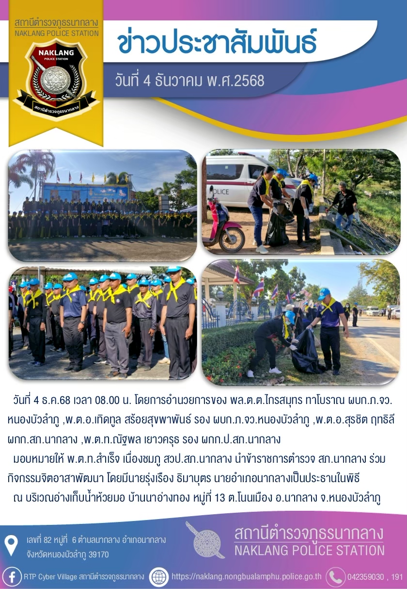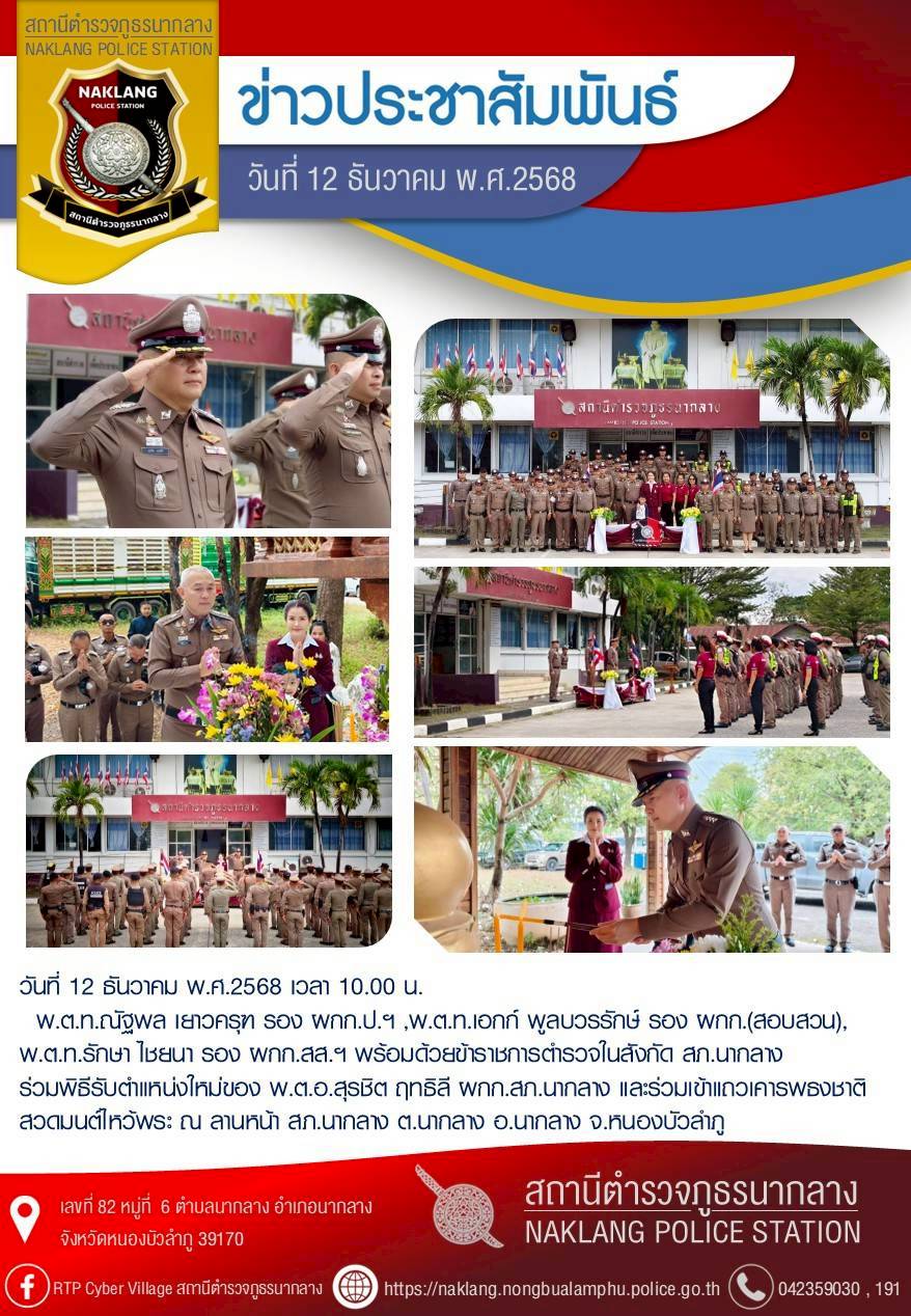 วันที่ 3 มี.ค.2569 เวลา 07:00 น. พ.ต.อ.สุรชิต ฤทธิลี ผกก.สภ.นากลาง มอบหมายให้ พ.ต.ท.รักษา ไชยนา รอง
