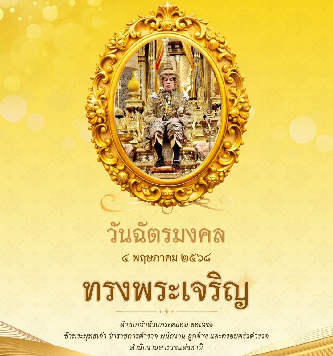 วันฉัตรมงคล ๔ พฤษภาคม ๒๕๖๘ ขอพระองค์ทรงพระเจริญยิ่งยืนนาน ด้วยเกล้าด้วยกระหม่อม ขอเดชะ ข้าพระพุทธเจ้
