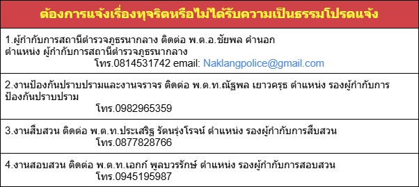 แจ้งเรื่องร้องเรียนการทุจริต/ประพฤติมิชอบไปยัง สภ.นากลาง